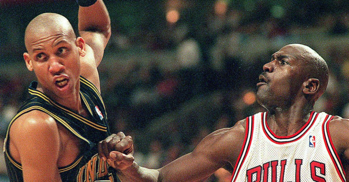 “他像头斗牛犬,总能踩在你最痛的神经上。” 公牛助教曾这样评价。米勒从不怕 “篮球之神”,垃圾话像机关枪一样停不下来,防守时小动作不断,可到了关键时刻,他的三分比谁都准。1998 年东决第四场,终场前 2.9 秒,他推开乔丹投进准绝杀,把大比分扳平 —— 哪怕最后抢七输球,他也让乔丹记住了:步行者不好惹。